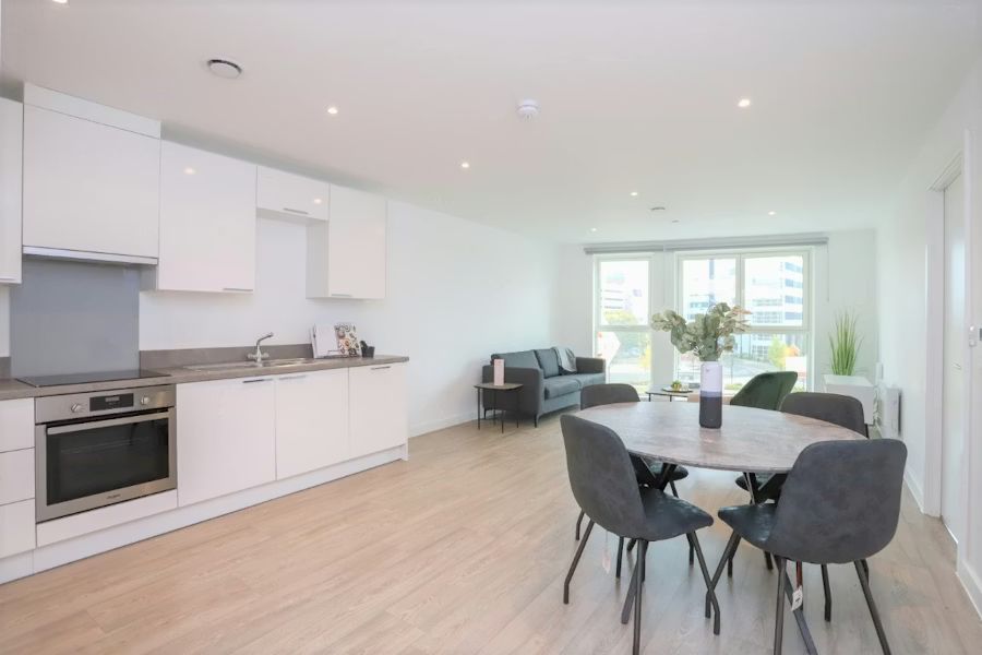 Welcome to your new urban retreat at Salford Quays! This modern 1-bedroom apartment offers a stylish and cozy living space. The open-concept layout is perfect for entertaining, and the sleek kitchen is equipped with top-of-the-line appliances. With its prime location, you'll be just steps away from the city's best restaurants, shops, and entertainment venues. Priced affordably at £ 1,245, this apartment is a fantastic opportunity to enjoy city living at its finest. Don't miss out – schedule a viewing today!