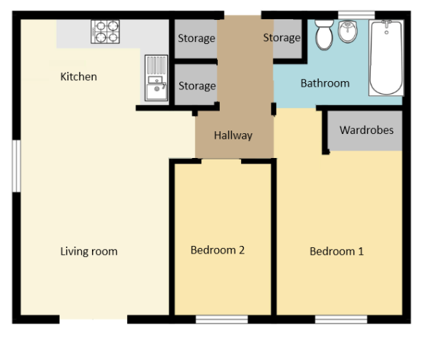 £ 750/month, min. 2 bedrooms