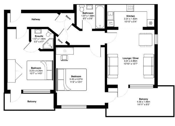 £ 1,550/month, min. 2 bedrooms
