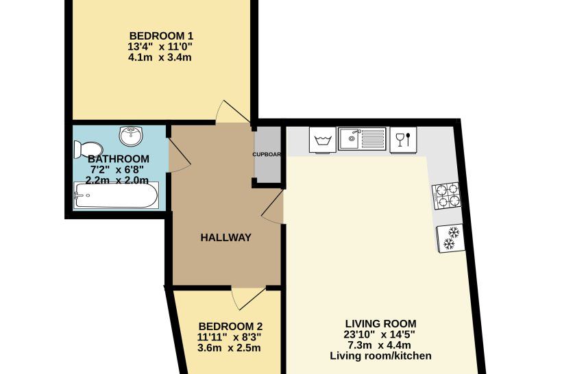 £ 1,350/month, min. 2 bedrooms