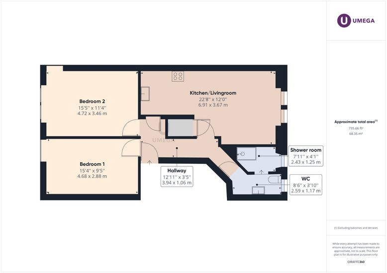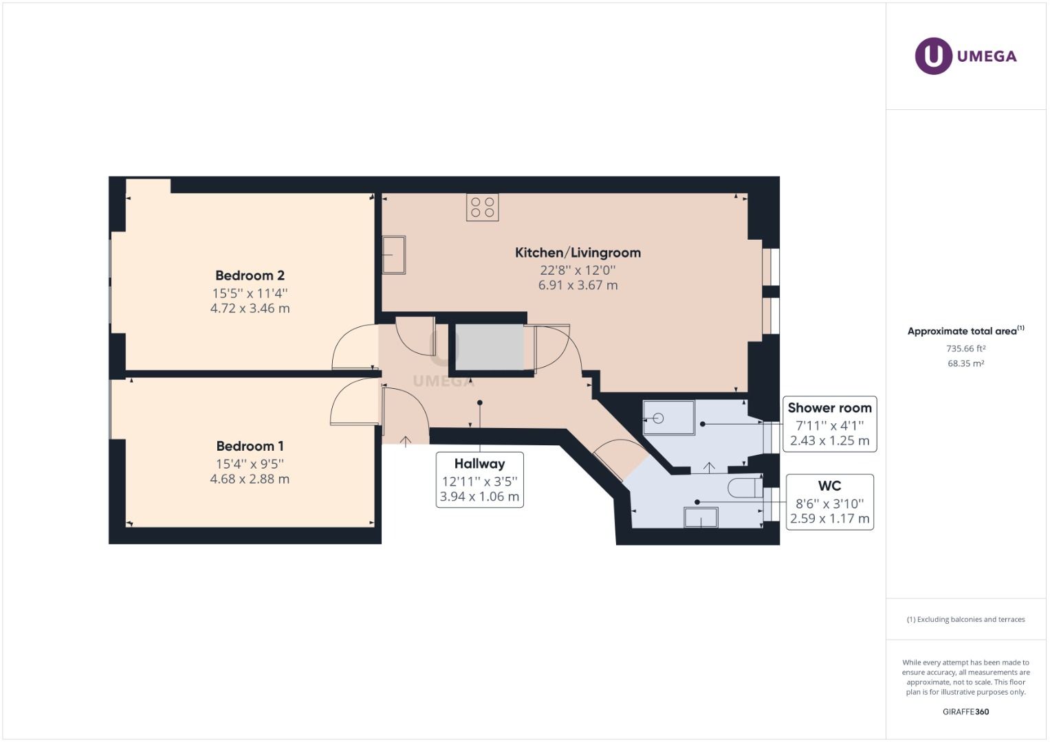 £ 1,550/month, min. 2 bedrooms