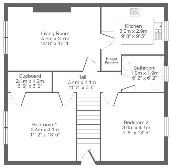 £ 950/month, min. 2 bedrooms