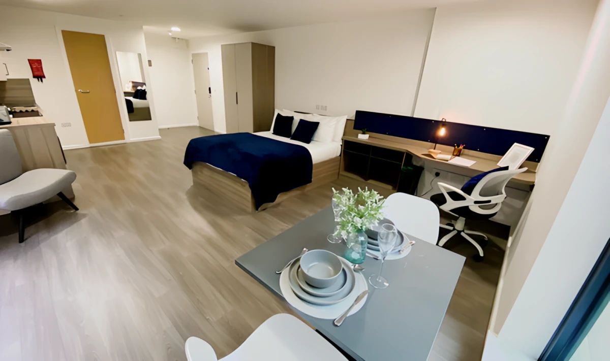 Welcome to your new cozy studio apartment at 17 Hollis Croft, Sheffield S1 4RR, United Kingdom! This stylish and compact living space offers everything you need for comfortable living. The open layout provides a versatile space for living and sleeping, with a modern kitchenette and a sleek bathroom. With its convenient location, you'll have easy access to nearby amenities and attractions. Priced affordably at £ 836, this studio is a great option for those seeking a convenient and compact living arrangement. Don't miss out – schedule a viewing today!