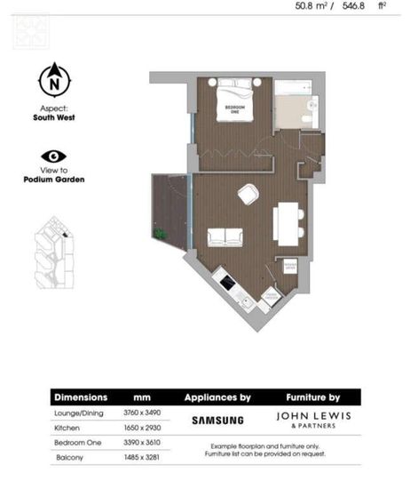 £ 2,550/month, min. 1 bedroom