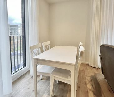 This sophisticated furnished one-bedroom apartment occupi...