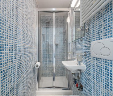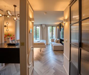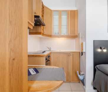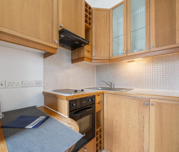 This stylish studio flat offers modern décor with wood fl...