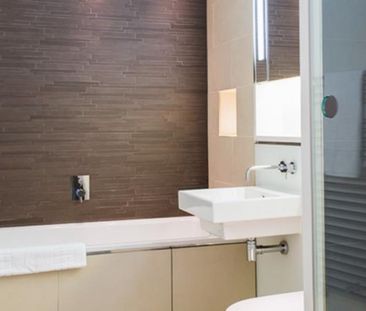 A contemporary, two bedroom, two bathroom apartment situa...