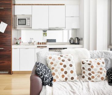 An interior designed, studio apartment on the lower groun...