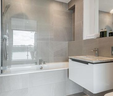 A modern two bedroom, two bathroom apartment in a purpose...
