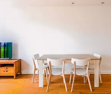 This apartment features a well-lit open plan living room ...